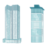 - energieeffiziente dreischichtige Fassade des Büroturms