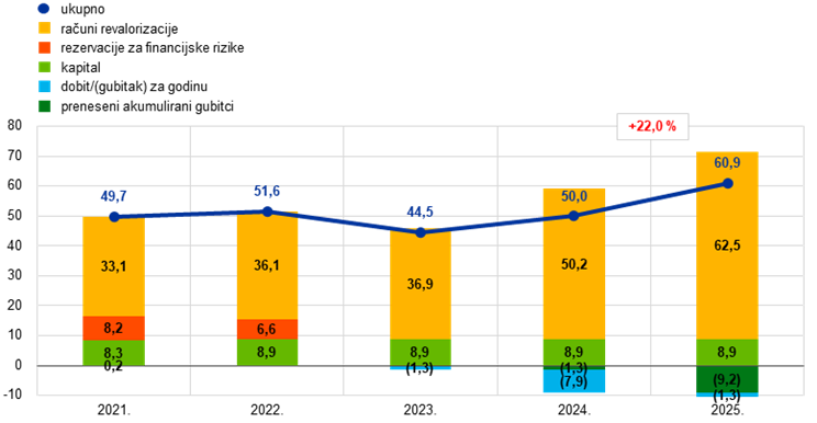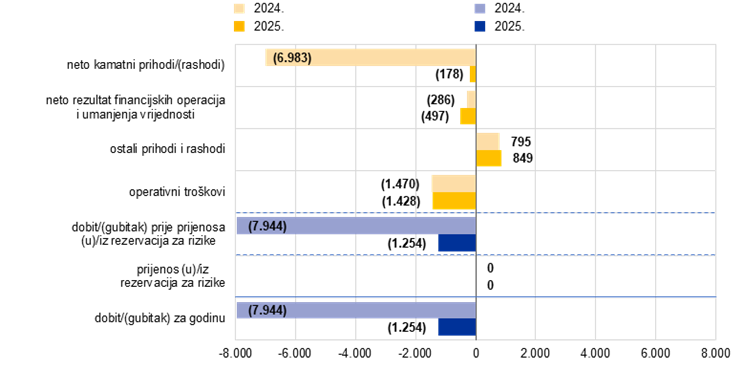 Kao i gubitci u prethodnim dvjema godinama, gubitak u 2025. ostat će u bilanci ESB‑a i nadomjestit će se budućom dobiti. |