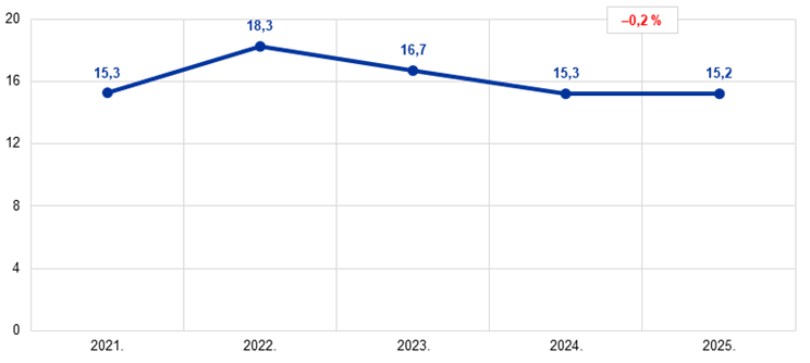 Bilanca ESB‑a smanjila se u 2025., i to za dodatnih 37,3 mlrd. EUR na 603,3 mlrd. EUR, čemu je ponovno pridonio otkup vrijednosnih papira u sklopu APP‑a i PEPP‑a. Ti su otkupi doveli do smanjenja portfelja vrijednosnih papira koji se drže za potrebe monetarne politike a gotovinska namira tih transakcija u sustavu TARGET dovela je do odgovarajućeg smanjenja obveza unutar Eurosustava. To je smanjenje tek djelomično neutralizirano odljevom gotovine zbog smanjenja depozita kod ESB‑a te su se zato istodobno smanjile i ostale obveze.