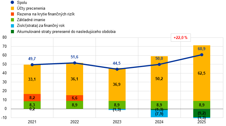 Poznámka: Na účely zostavovania ročnej účtovnej závierky ECB čisté imanie ECB pozostáva z jej splateného základného imania, prostriedkov vedených v rezerve na krytie finančných rizík a vo všeobecnom rezervnom fonde, z účtov precenenia (bez účtu precenenia v súvislosti s dávkami vyplácanými po skončení pracovného pomeru), akumulovaných strát z predchádzajúcich rokov a zisku/(straty) za bežný rok.