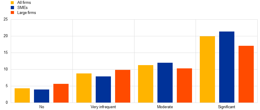 For an overview of how the survey was set up, the general characteristics of the euro area firms that participate in the survey and the changes introduced to the methodology and the questionnaire over time, see the “Methodological information on the survey and user guide for the anonymised micro dataset”, which is available on the ECB’s website.[8]